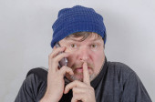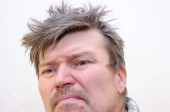Zdjęcie "Roztrzepany mężczyzna patrzy w górę za kamerę. Nieogolony mężczyzna z splątanymi włosami we włosach. W środku pokoju. Skupienie selektywne." może być wykorzystywane do celów osobistych i komercyjnych zgodnie z warunkami zakupionej licencji Royalty-free. Obraz jest dostępny do pobrania w jakości wysokiej rozdzielczości do 5760x3840.