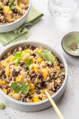 Zdjęcie "Quinoa z kukurydzą i czarną fasolą" może być wykorzystywane do celów osobistych i komercyjnych zgodnie z warunkami zakupionej licencji Royalty-free. Obraz jest dostępny do pobrania w jakości wysokiej rozdzielczości do 5760x3840.