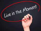 ręka z czerwonym markerem pisze napis na czerwono