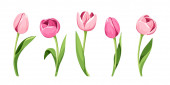 Akwarelowe tulipany. Wiosenna ilustracja odizolowana na białym tle dla Twojego projektu. Zestaw różowe kwiaty