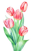Akwarelowe tulipany. Wiosenne kwiaty izolowane na białym tle dla Twojego projektu. Ręcznie rysowane ilustracje
