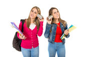 Zdjęcie "dwie uczennice wywołanie przez telefony komórkowe" może być wykorzystywane do celów osobistych i komercyjnych zgodnie z warunkami zakupionej licencji Royalty-free. Obraz jest dostępny do pobrania w jakości wysokiej rozdzielczości do 5760x3840.