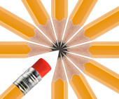Koncepcja różnorodności. Zestaw białych ołówków i jeden czerwony ołówek