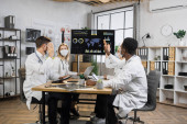 Młody dyrektor medyczny wskazujący jednego z klinicystów podczas dyskusji