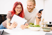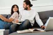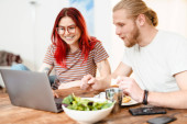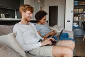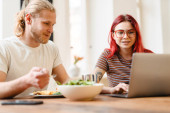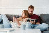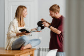Zdjęcie "Biały mężczyzna i kobieta rozmawiają i śmieją się siedząc na podłodze w domu" może być wykorzystywane do celów osobistych i komercyjnych zgodnie z warunkami zakupionej licencji Royalty-free. Obraz jest dostępny do pobrania w jakości wysokiej rozdzielczości do 5760x3840.