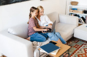 Zdjęcie "Biały mężczyzna i kobieta rozmawiają i śmieją się siedząc na podłodze w domu" może być wykorzystywane do celów osobistych i komercyjnych zgodnie z warunkami zakupionej licencji Royalty-free. Obraz jest dostępny do pobrania w jakości wysokiej rozdzielczości do 5760x3840.