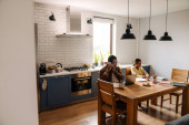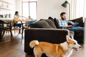 Zdjęcie "brodaty człowiek za pomocą telefonu komórkowego podczas jego dziewczyna gotowanie w kuchni w domu" może być wykorzystywane do celów osobistych i komercyjnych zgodnie z warunkami zakupionej licencji Royalty-free. Obraz jest dostępny do pobrania w jakości wysokiej rozdzielczości do 5760x3840.