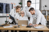 Młoda lekarka robiąca notatki podczas spotkania cyfrowego