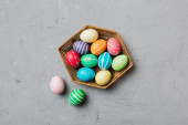 Zdjęcie "ręcznie malowane pisanki na zielonym tle" może być wykorzystywane do celów osobistych i komercyjnych zgodnie z warunkami zakupionej licencji Royalty-free. Obraz jest dostępny do pobrania w jakości wysokiej rozdzielczości do 5760x3840.