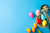 Zdjęcie "Pisanki i wiosenne kwiaty na niebieskim tle" może być wykorzystywane do celów osobistych i komercyjnych zgodnie z warunkami zakupionej licencji Royalty-free. Obraz jest dostępny do pobrania w jakości wysokiej rozdzielczości do 5760x3840.