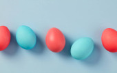 kolorowe pisanki na niebieskim tle