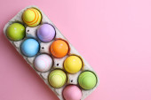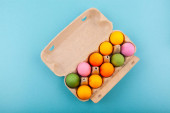 kolorowe pisanki na niebieskim tle