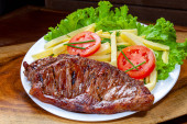 Stek z rożna w restauracji, pokrojona w plasterki picanha