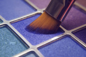 Tusz do rzęs leży na białym tle i pozostawia czarny ślad pokazujący, jak działa szczotka. Kosmetyki i makijaż pielęgnacja osobista.