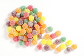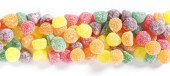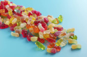 Mix galaretki cukierki na niebieskim tle, widok z góry