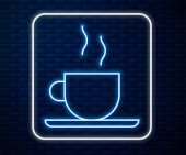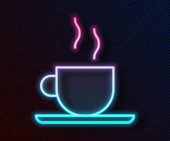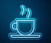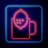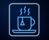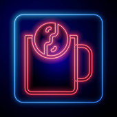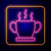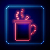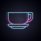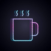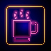 Świecący neon Filiżanka ikony herbaty izolowane na czarnym tle. Wektor