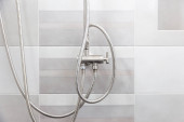 Zdjęcie "Wnętrze nowoczesnej kabiny prysznicowej w łazience w domu. Nowoczesny wystrój łazienki. Biała kąpiel, prysznic" może być wykorzystywane do celów osobistych i komercyjnych zgodnie z warunkami zakupionej licencji Royalty-free. Obraz jest dostępny do pobrania w jakości wysokiej rozdzielczości do 5760x3840.