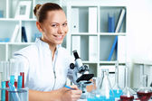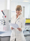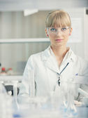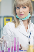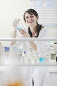 badaczka trzymająca probówkę w laboratorium