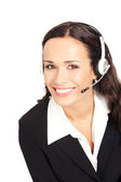 piękne klienta usługi operatora kobieta z zestawu słuchawkowego