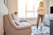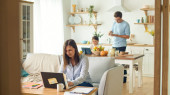 Zdjęcie "Dotknięta kobieta ma wideokonferencję w domu" może być wykorzystywane do celów osobistych i komercyjnych zgodnie z warunkami zakupionej licencji Royalty-free. Obraz jest dostępny do pobrania w jakości wysokiej rozdzielczości do 5760x3840.