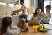 Zdjęcie "Zmęczona kobieta przewraca oczami z powodu irytujących dzieci." może być wykorzystywane do celów osobistych i komercyjnych zgodnie z warunkami zakupionej licencji Royalty-free. Obraz jest dostępny do pobrania w jakości wysokiej rozdzielczości do 5760x3840.