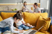 Zmęczona kobieta przewraca oczami z powodu irytujących dzieci.