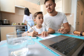 Zdjęcie "Zdenerwowana kobieta patrząc na pracę domową syna" może być wykorzystywane do celów osobistych i komercyjnych zgodnie z warunkami zakupionej licencji Royalty-free. Obraz jest dostępny do pobrania w jakości wysokiej rozdzielczości do 5760x3840.