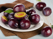 świeże śliwki na białym talerzu