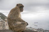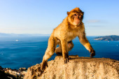Dzikie makaki barbarzyńskie lub zwane po prostu małpami gibraltarskimi siedzącymi na Skale Gibraltarskiej, Europa