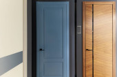 Zdjęcie "Drzwi wejściowe na sprzedaż w wyspecjalizowanym sklepie. Kupujący wolą metalowe drzwi, stylizowane na drewniane." może być wykorzystywane do celów osobistych i komercyjnych zgodnie z warunkami zakupionej licencji Royalty-free. Obraz jest dostępny do pobrania w jakości wysokiej rozdzielczości do 5760x3840.