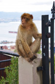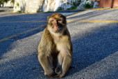Dzika makaka Barbary siedząca na ścieżce na Gibraltarze, Europa