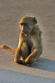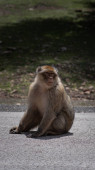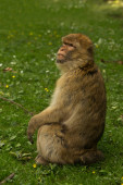 Dzika makaka Barbary siedząca na ścieżce na Gibraltarze, Europa