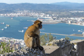 Dzikie makaki barbarzyńskie lub zwane po prostu małpami gibraltarskimi siedzącymi na Skale Gibraltarskiej, Europa