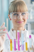 badaczka trzymająca probówkę w laboratorium