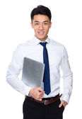 biznesmen gospodarstwa schowka i pióra