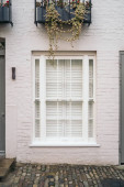 Typowy dom w starym mieście ZIERIKZEE na Zeeland, Holandia, z ławką i kwiatami