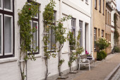 Typowa Holandia - rower opierający się o fasadę domu na Zeeland w Holandii