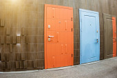 Zdjęcie "Drzwi wejściowe na sprzedaż w wyspecjalizowanym sklepie. Kupujący wolą metalowe drzwi, stylizowane na drewniane." może być wykorzystywane do celów osobistych i komercyjnych zgodnie z warunkami zakupionej licencji Royalty-free. Obraz jest dostępny do pobrania w jakości wysokiej rozdzielczości do 5760x3840.