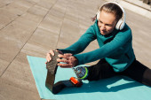 Młoda sportowiec z protezą robi ćwiczenia podczas treningu na świeżym powietrzu