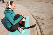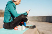 Zdjęcie "Uśmiechnięta młoda, biała sportowiec z protezą nogi stojąca na mostku outdoo za pomocą telefonu komórkowego" może być wykorzystywane do celów osobistych i komercyjnych zgodnie z warunkami zakupionej licencji Royalty-free. Obraz jest dostępny do pobrania w jakości wysokiej rozdzielczości do 5760x3840.