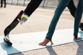 Młoda sportowiec z protezą stojąca na moście miejskim