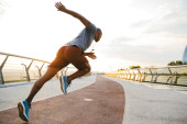 Przycięty obraz młodej niepełnosprawnej kobiety z protezą lag jogging na świeżym powietrzu