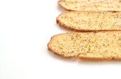 Zbliżenie tekstury tosty na czarnym drewnianym stole