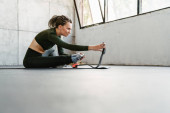 Zdjęcie "Młoda kobieta z protezą patrząc na smartwatch podczas treningu w pomieszczeniach" może być wykorzystywane do celów osobistych i komercyjnych zgodnie z warunkami zakupionej licencji Royalty-free. Obraz jest dostępny do pobrania w jakości wysokiej rozdzielczości do 5760x3840.