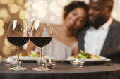 Nierozpoznawalna Czarna Para Taniec W Kuchni, Skup się na dwóch kieliszkach wina
