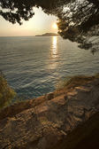 Malowniczy zachód słońca nad zatoką Morza Egejskiego.