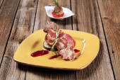 pieczone mięso na drewniany szpikulec
