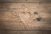Kupa płatków owsa w kształcie serca. Serce owsiane na ciemnym tle. Zdrowe odżywianie