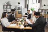 Zespół zróżnicowanych pracowników firmy mających briefing w biurze