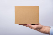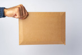 mężczyzna ręka gospodarstwa poczta paczka na białym tle